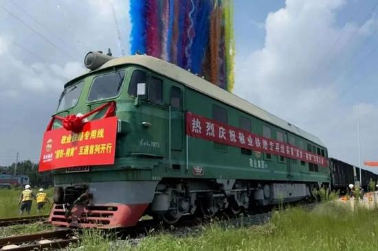 圖為公司成功發(fā)運(yùn)首列聯(lián)通國(guó)鐵鋼材業(yè)務(wù)