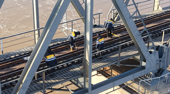 工具變少了,精度更高了。為了做好包銀高鐵磴口黃河特大橋養(yǎng)護維修作業(yè),烏海工務段抽調精兵強將,成立了高鐵路橋車間?!耙郧暗拇髽驑蛎婊炷两Y構裂紋控制在0.2毫米即可,高鐵橋梁養(yǎng)護精度提高,不能出現裂紋和松動掉塊?!?/span>董開寶繼續(xù)介紹道。
