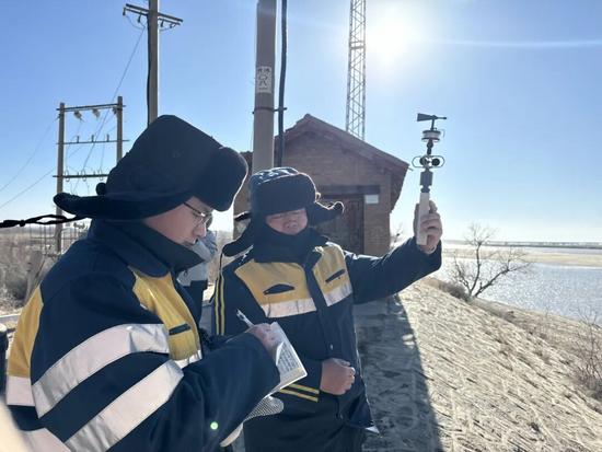 “我們必須及時進行凌情觀測作業(yè),盯緊變化、及時處理。”馬瑞祥介紹時,巴彥路橋工區(qū)工長郝永忠正單手舉起風速測試儀,目光緊緊盯住屏幕,身旁的橋隧工王子凡邊復誦邊記錄相關數據。為確保檢測精確,他們的雙手裸露在外,被風吹得通紅。