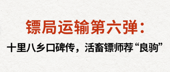鏢局運輸?shù)诹鶑椮锇肃l(xiāng)口碑傳,活畜鏢師薦“良駒”