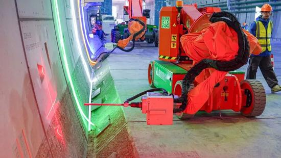 近期,隨著項目推進,隧道內(nèi)部開始進入機電安裝、管線敷設(shè)階段,需在堅硬的混凝土管片上進行數(shù)以萬計的高精度鉆孔。粉塵控制、高空作業(yè)安全、毫厘不差的精度要求,在密閉、富水的超長隧道空間中,被無限放大。