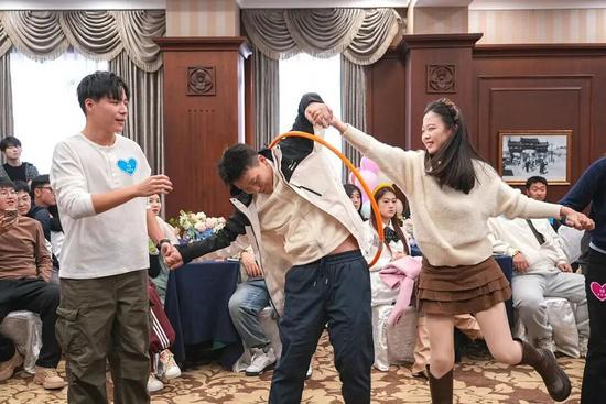 “為你翻山越嶺”呼啦圈互動(dòng)游戲更是熱鬧非凡,大家手拉手,讓呼啦圈在彼此的手臂間穿梭。青年們各顯神通,靈活地扭動(dòng)身體,巧妙地配合著隊(duì)友。偶爾出現(xiàn)意料之外的“小狀況”,引得眾人捧腹大笑。