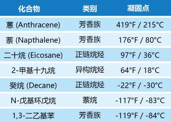 代表性碳氫化合物的凝固點