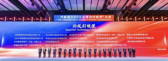 再次熱烈祝賀一汽解放2026全球合作伙伴大會(huì)取得圓滿成功!榮獲雙項(xiàng)大獎(jiǎng),是長(zhǎng)城潤(rùn)滑油的榮幸,更是對(duì)過(guò)往精誠(chéng)合作的最佳褒獎(jiǎng)。站在新的歷史起點(diǎn),我們將始終秉持“技術(shù)+服務(wù)+合作”的理念,以更卓越的產(chǎn)品、更領(lǐng)先的科技、更完善的服務(wù),與一汽解放并肩前行,共同驅(qū)動(dòng)中國(guó)商用車產(chǎn)業(yè)駛向更加智能、綠色、全球化的璀璨未來(lái)!
