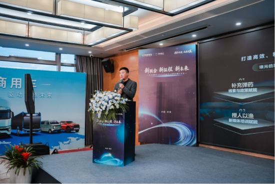 面對2026年重卡市場電動化加速滲透、TCO主導競爭的深度變革趨勢,聯(lián)合重卡營銷公司總經(jīng)理黃鑫冰進行了《聯(lián)合重卡新零售與生態(tài)價值打造》主題報告分享。明確新一年的銷量目標:全年銷量沖刺15000臺,其中新能源重卡12000臺、傳統(tǒng)能源重卡3000臺。為實現(xiàn)目標,聯(lián)合重卡將聚焦新零售與生態(tài)價值打造,構建“生態(tài)共生、價值共創(chuàng)、風險共擔”的新型合作體系。在渠道建設上,擇優(yōu)打造區(qū)域標桿合作伙伴與授權交付中心,通過區(qū)域授權、價格保障、金融支持等政策賦能渠道伙伴;在生態(tài)構建上,整合“車、貨、金融、能源”四大核心要素,推動渠道升級為“綠色智慧運力解決方案提供商”,打造新能源重卡全生命周期運營生態(tài)平臺,實現(xiàn)從合作伙伴到戰(zhàn)略共同體的升級。