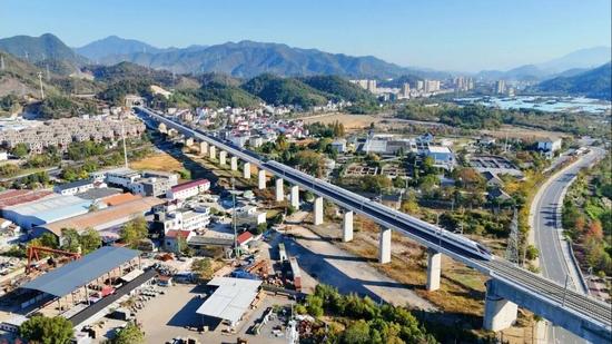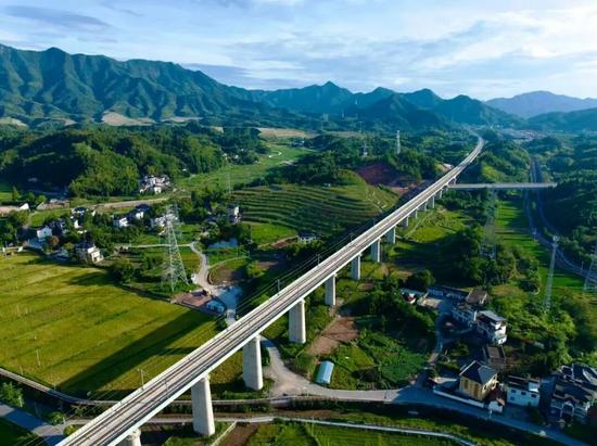 杭衢高鐵連接浙江省杭州市和衢州市,與既有滬昆高鐵杭州至衢州段形成高鐵雙通道,線路全長(zhǎng)131公里,設(shè)計(jì)時(shí)速350公里,2020年5月開工建設(shè)。全線共設(shè)建德、建德南、龍游北、衢州西、江山5座車站,其中建德站、江山站為改擴(kuò)建車站,其余為新建車站,為浙江共同富裕示范區(qū)建設(shè)注入澎湃動(dòng)能,也為中國(guó)高鐵投融資改革寫下了濃墨重彩的實(shí)踐篇章。
