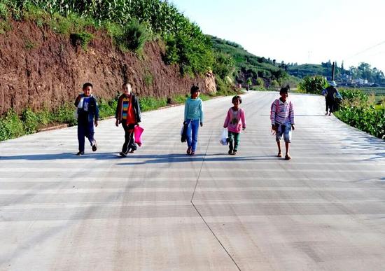 ▲瀘西縣午街鋪鎮(zhèn)雨灑村雅普公路,孩子們走在上學(xué)的路上。(供圖:紅河州交通運(yùn)輸局
