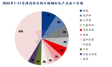 2025年國內(nèi)涉及的不銹鋼冷軋產(chǎn)品出口土耳其的量占比下滑,目前占比約8%的份額。