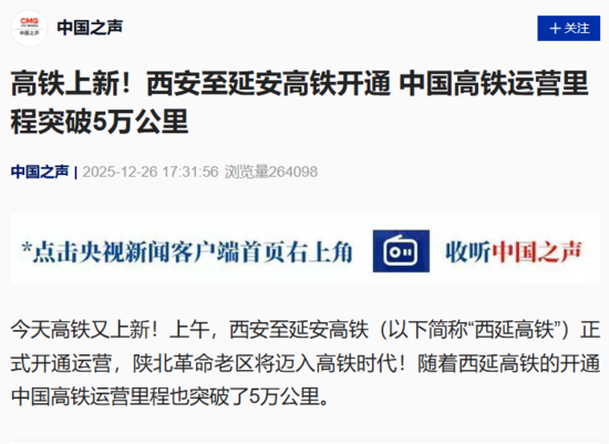 中國之聲:西安至延安高鐵開通 中國高鐵運營里程突破5萬公里