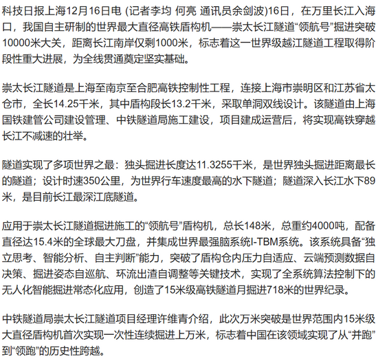 在長江底前進 “領(lǐng)航號”高鐵盾構(gòu)機掘進突破10000米
