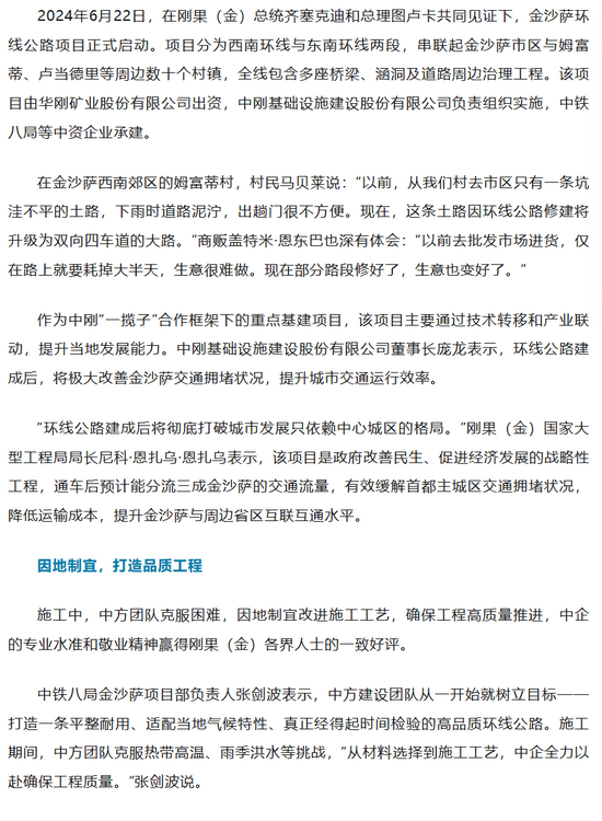 中企承建中企承建的剛果(金)首都環(huán)線公路建設(shè)全面加速——“新道路帶來新生活”