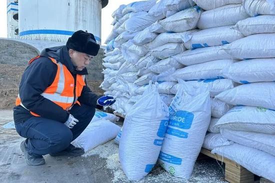 除了液態(tài)的防凍液和抑塵劑,新朔鐵路還有一款“固態(tài)神器”——防凍粉。它就像給煤炭撒上一層“抗凍小衛(wèi)士”,主要針對(duì)含水率偏高、運(yùn)輸距離長(zhǎng)或途經(jīng)極寒區(qū)域(-25℃以下)的煤炭,和防凍液形成“雙保險(xiǎn)”防護(hù)。