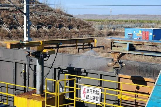 防凍液的噴灑可是“技術(shù)活”,必須在煤炭裝車(chē)前完成,這是固定的“作業(yè)順序”哦!作業(yè)人員會(huì)操控自動(dòng)化噴頭,對(duì)著空車(chē)廂進(jìn)行“立體環(huán)繞式”噴灑:車(chē)廂底板、兩側(cè)墻板、端板都要噴到,確保每一處都形成均勻的防護(hù)膜,就像給車(chē)廂做了一次“全身護(hù)膚”。
