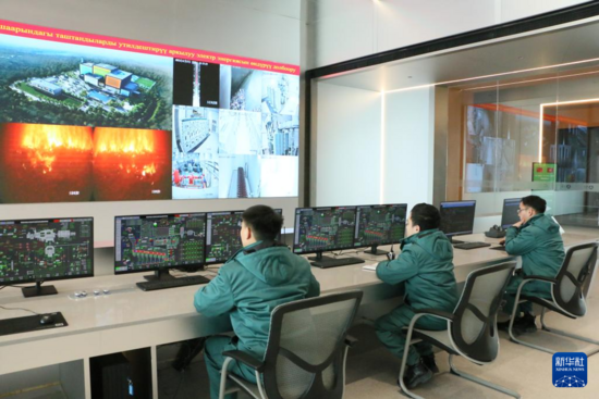 12月27日,在吉爾吉斯斯坦比什凱克,工作人員在比什凱克市垃圾焚燒發(fā)電項目中央控制室監(jiān)測項目運(yùn)行情況。新華社記者 江宥林 攝