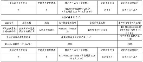 根據(jù)公示,保定太行和益環(huán)保科技有限公司日產(chǎn)3500噸新型千法熟料生產(chǎn)線(xiàn)原備案產(chǎn)能2000t/d,置換產(chǎn)能3000t/d,置換比例為2:1,邢臺(tái)金隅詠寧水泥有限公司一條2000t/d水泥熟料線(xiàn)中的1000t/d和河北金隅鼎鑫水泥有限公司一條2000t/d水泥熟料線(xiàn)用于本項(xiàng)目置換產(chǎn)能,均計(jì)劃在公告后六個(gè)月內(nèi)拆除退出。
