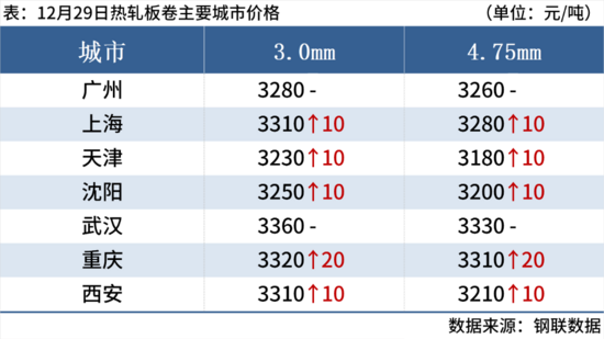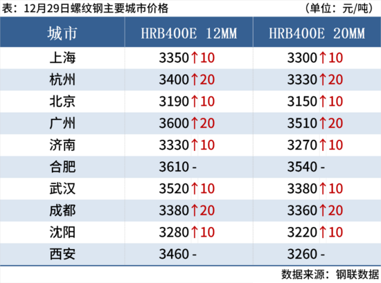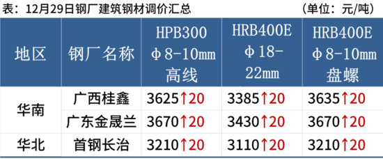 12月29日,3家鋼廠建筑鋼材出廠價上調20元/噸。