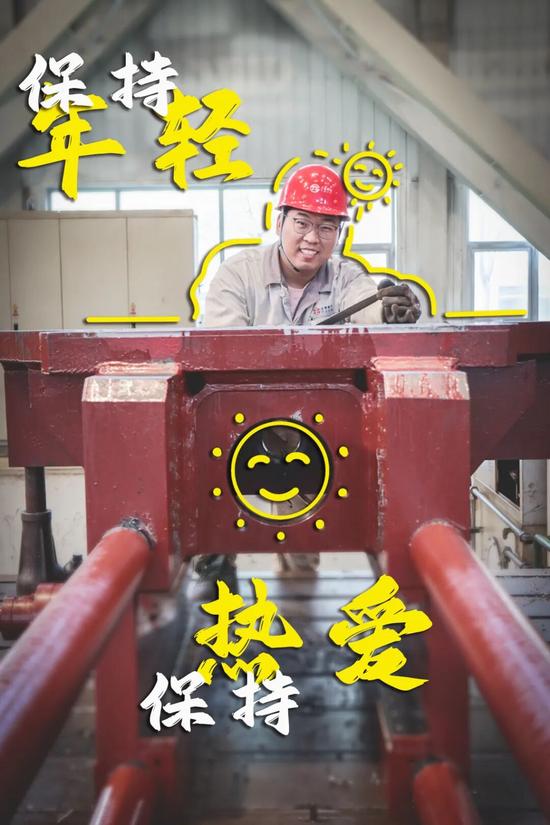 在太重濱海公司,青年職工半蹲在擠壓機關鍵部件旁,油污與汗水浸透工裝,卻掩不住他對崗位的專注與熱愛,這是奮斗者最美的模樣。