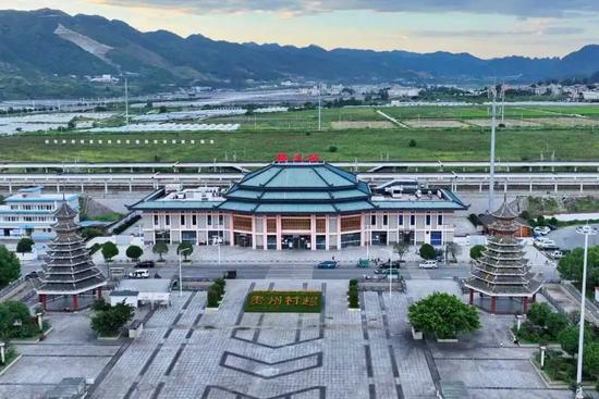 貴州省黔東南苗族侗族自治州黎平縣肇興侗寨就在從江站旁,從這里出發(fā),最快2小時(shí)40分鐘就可到達(dá)廣州、1小時(shí)11分鐘即到貴陽,深藏寨中的侗族文化因高鐵擺脫了地域局限,在涌動(dòng)的客流中被喚醒、被激活。