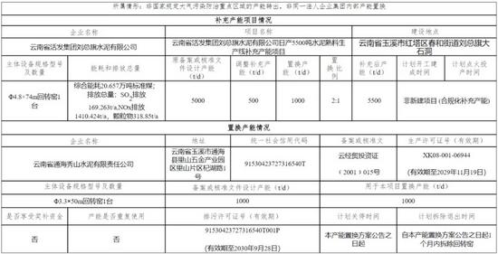 根據(jù)公示,云南省活發(fā)集團(tuán)劉總旗水泥有限公司日產(chǎn)5500噸水泥熟料生產(chǎn)線原備案或核準(zhǔn)文件設(shè)計(jì)產(chǎn)能5000t/d,調(diào)整補(bǔ)充產(chǎn)能500t/d,置換產(chǎn)能 t/d,置換比例為2:1。云南省通海秀山水泥有限責(zé)任公司一條1000t/d水泥熟料線用于本項(xiàng)目置換產(chǎn)能,該生產(chǎn)線計(jì)劃自本產(chǎn)能置換方案公告之日起1個(gè)月內(nèi)拆除回轉(zhuǎn)窯。