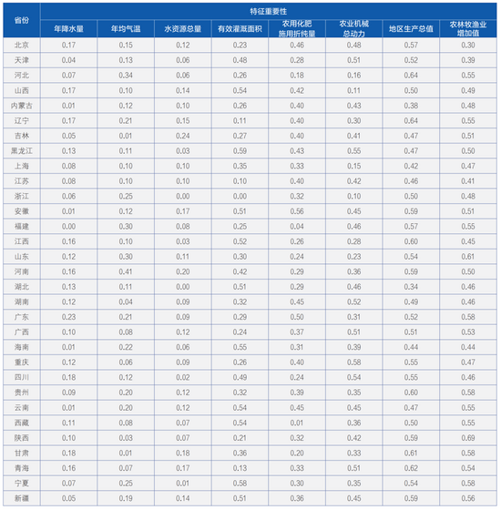 各省份農(nóng)業(yè)經(jīng)濟水分生產(chǎn)率影響因素的特征重要性