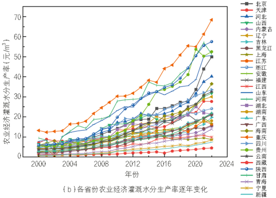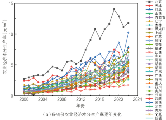 ▲各省份農(nóng)業(yè)經(jīng)濟灌溉水分生產(chǎn)率逐年變化