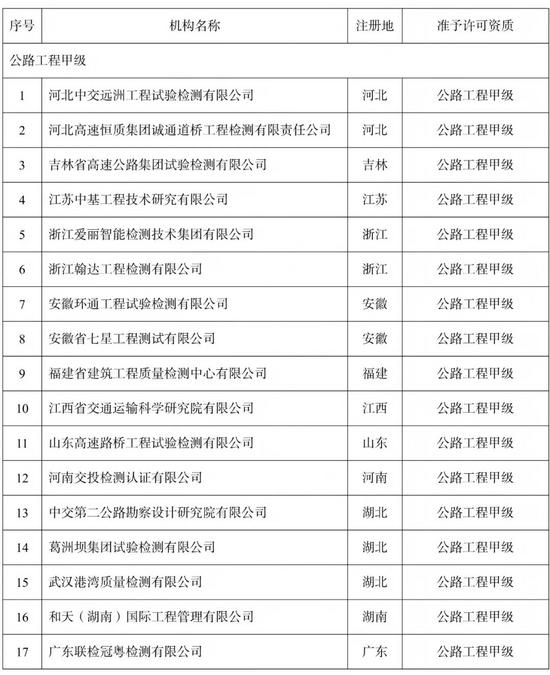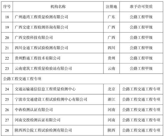 根據(jù)《中華人民共和國行政許可法》《公路水運工程質(zhì)量檢測管理辦法》等有關(guān)規(guī)定,交通運輸部對近期申請公路水運工程質(zhì)量檢測機構(gòu)資質(zhì)許可的單位進行審查,作出了許可決定。