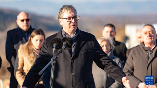 12月29日,在塞爾維亞戈盧巴茨市,塞爾維亞總統(tǒng)武契奇視察“多瑙走廊”快速路項(xiàng)目時(shí)發(fā)表講話。新華社發(fā)(王韡攝)