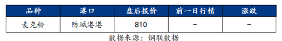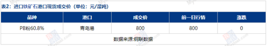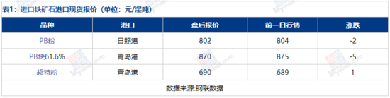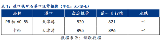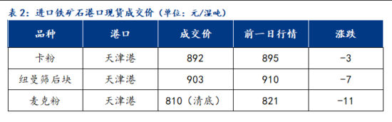 表1:進口鐵礦石港口現(xiàn)貨報價(單位:元/濕噸)