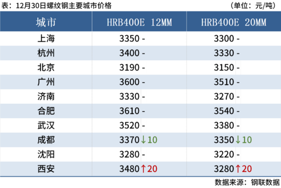 12月30日,1家鋼廠建筑鋼材出廠價(jià)上調(diào)20元/噸。