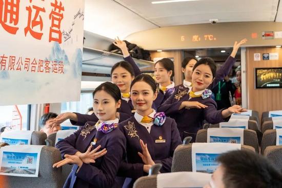 9時(shí)18分,列車緩緩啟動(dòng),速度一路攀升,朝著皖東方向駛?cè)?。車窗外,皖東北平原的冬景如畫(huà)卷般展開(kāi);車廂內(nèi),暖意融融,充滿歡聲笑語(yǔ)。