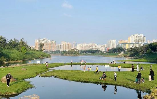??谑薪鹋X公園一角,城市污水處理之處生態(tài)蛻變,如今成為市民周末的休憩好去處。 陳標(biāo)志/攝
