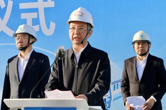 袁敏代表施工單位致辭,他表示,自項目開工以來,面對復(fù)雜的海洋水文地質(zhì)條件、惡劣的施工環(huán)境、極高的技術(shù)標(biāo)準(zhǔn)以及緊張的工期要求,中鐵大橋局建設(shè)者以“逢山開路、遇水架橋”的拼搏精神、“科學(xué)嚴(yán)謹(jǐn)、精益求精”的專業(yè)態(tài)度,奮戰(zhàn)在施工一線。項目部精心組織、周密部署,不斷優(yōu)化施工方案;堅持科技引領(lǐng),攻克了一系列技術(shù)難題;狠抓安全管理,確保了工程建設(shè)的平穩(wěn)有序;嚴(yán)把質(zhì)量關(guān)口,致力于打造經(jīng)得起歷史和人民檢驗的百年精品工程。后續(xù)施工中,中鐵大橋局將繼續(xù)保持高昂的斗志和嚴(yán)謹(jǐn)?shù)淖黠L(fēng),安全、優(yōu)質(zhì)、高效地完成剩余工程建設(shè),確保大橋如期具備通車條件,為寧波市域鐵路的早日建成、為服務(wù)寧波經(jīng)濟社會發(fā)展大局、為便捷沿線人民出行貢獻(xiàn)力量。
