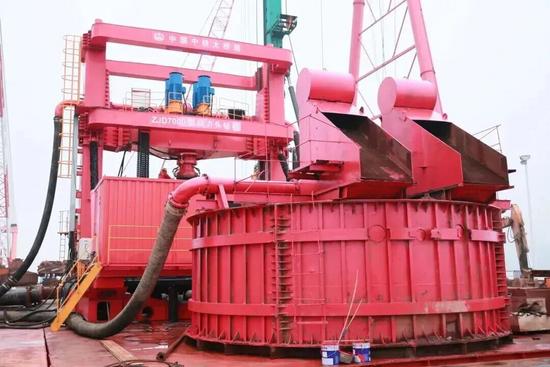 大工程需要重兵器。5號(hào)主塔墩2023年7月正式開(kāi)鉆后,中鐵大橋局聯(lián)合國(guó)內(nèi)頂尖廠家研制了ZJD7000型動(dòng)力頭回轉(zhuǎn)鉆機(jī)和SWDM1280/XR1600E兩款超大直徑旋挖鉆機(jī)。其中,ZJD7000大型智能回旋鉆機(jī)最大鉆孔直徑可達(dá)7米,最深鉆孔深度300米,額定扭矩高達(dá)1200千牛·米,并配備先進(jìn)智能化、視頻監(jiān)控和遠(yuǎn)程傳輸系統(tǒng),助力鉆孔樁施工于2024年1月7日完工,較原計(jì)劃大大提前。