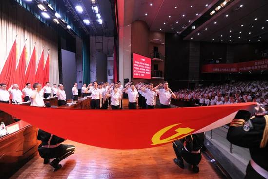 2025年7月2日,中信泰富特鋼集團大冶特鋼召開慶祝中國共產(chǎn)黨成立104周年暨先進表彰大會。會議強調(diào),要深入貫徹中央八項規(guī)定精神,不斷把作風(fēng)建設(shè)引向深入,團結(jié)和引導(dǎo)廣大黨員干部錘煉黨性修養(yǎng)、筑牢思想防線,守正創(chuàng)新、實干爭先,在推進企業(yè)高質(zhì)量發(fā)展中當(dāng)先鋒、作示范。圖為該公司新黨員入黨宣誓儀式。 (特約通訊員 朱友松 攝)