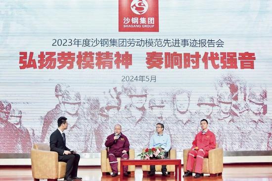 2024年5月14日、15日,沙鋼連續(xù)舉辦兩場“弘揚勞模精神·奏響時代強音”2023年度集團勞動模范先進事跡報告會,將2024年勞模精神系列宣傳教育活動推向高潮,表達對勞動模范的崇高禮贊,感染和激勵廣大干部、職工立足崗位、奮勇向前。圖為沙鋼老、中、青3代勞模代表通過訪談的形式,分享他們自己的奮斗經(jīng)歷和對勞模精神的感悟。 (張龍飛/文 孫靜波/攝)