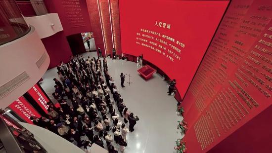 在中國寶武寶鋼股份黨性教育智慧體驗中心,黨員們重溫入黨誓詞。 (中國寶武 供圖)
