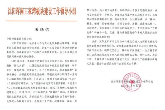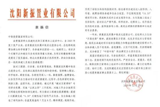 12月29日,沈陽渾南王家灣板塊建設(shè)工作領(lǐng)導(dǎo)小組及沈陽新振置業(yè)有限公司向集團(tuán)公司分別發(fā)來表揚(yáng)信,對在沈陽王家灣冰上運(yùn)動(dòng)中心項(xiàng)目建設(shè)過程中展現(xiàn)出的精益求精建設(shè)管理水平和品牌實(shí)力,以及建設(shè)任務(wù)連續(xù)取得重大突破做出的貢獻(xiàn),予以充分肯定和高度評價(jià)。