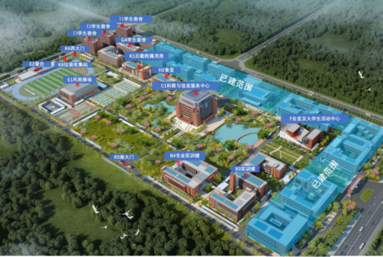包含教學(xué)樓、實訓(xùn)樓、學(xué)生宿舍等