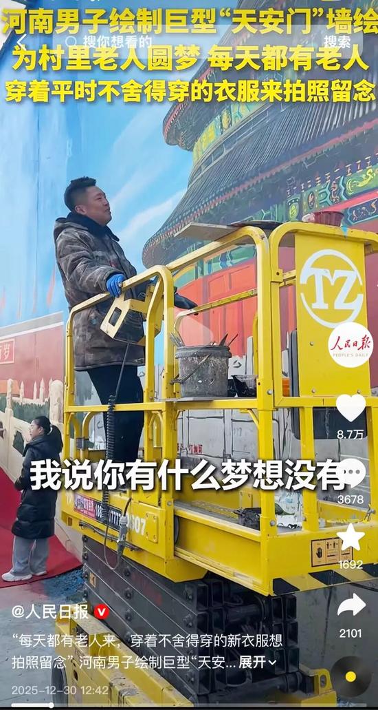 青年畫(huà)家吳承言用手中的畫(huà)筆,把北京的標(biāo)志性景觀“搬”到了家鄉(xiāng)的墻面上,為村里沒(méi)出過(guò)遠(yuǎn)門(mén)的老人圓了“首都?jí)簟?。視頻發(fā)布后迅速登上熱搜,人民日?qǐng)?bào)、央廣網(wǎng)等全網(wǎng)媒體紛紛點(diǎn)贊。而讓這份浪漫得以落地的,正是太重剪叉車(chē)的默默助力。