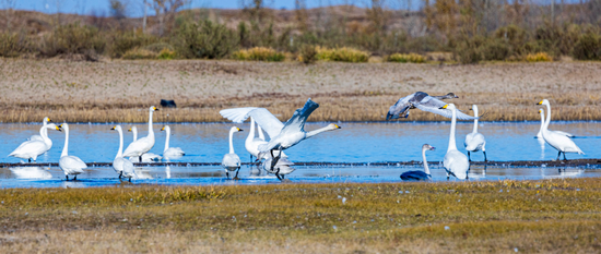 2025年西遼河春季調(diào)度期間,西遼河上游蘇家堡樞紐成為候鳥的樂園 供圖/通遼市水務(wù)局
