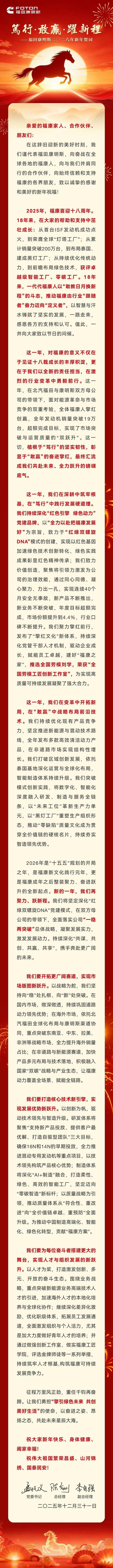 鐵甲工程機械網(wǎng)> 工程機械資訊> 行業(yè) > 福田康明斯2026年新年賀詞