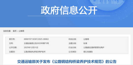 現(xiàn)發(fā)布《公路鋼結(jié)構橋梁養(yǎng)護技術規(guī)范》(JTG/T 5123-2025),作為公路工程推薦性行業(yè)標準,自2026年4月1日起施行。