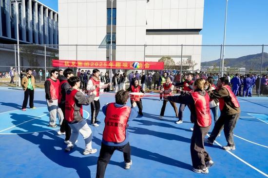 與緊張激烈的技能比武交相輝映,由集團工會和黨群辦組織的2025年度趣味運動會也在同日的青山、橫畈園區(qū)籃球場歡樂上演。運動會設(shè)有投籃、跳繩、套圈圈等個人項目,以及“4*100米混合接力”、“龍行天下”、“八字繩”、“同心擊鼓”、“摸石頭過河”等需要高度協(xié)作的團體項目。各分工會組成的代表隊,在輕松活潑的賽場上揮灑汗水、默契配合,加油聲、歡笑聲此起彼伏。這場運動會不僅有效緩解了員工的工作壓力,豐富了業(yè)余文化生活,更進一步增強了團隊凝聚力與歸屬感,為嚴肅的技能競賽日注入了輕松愉快的氛圍,體現(xiàn)了公司對員工身心健康的關(guān)懷。