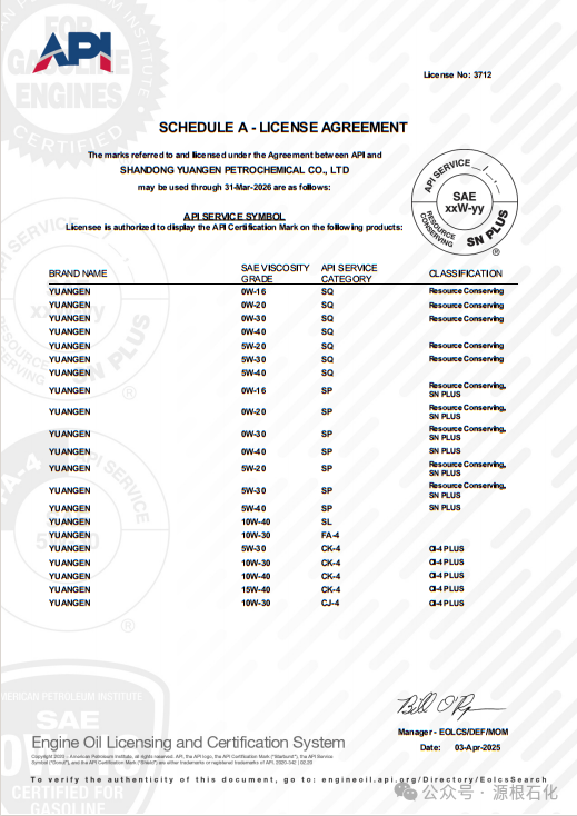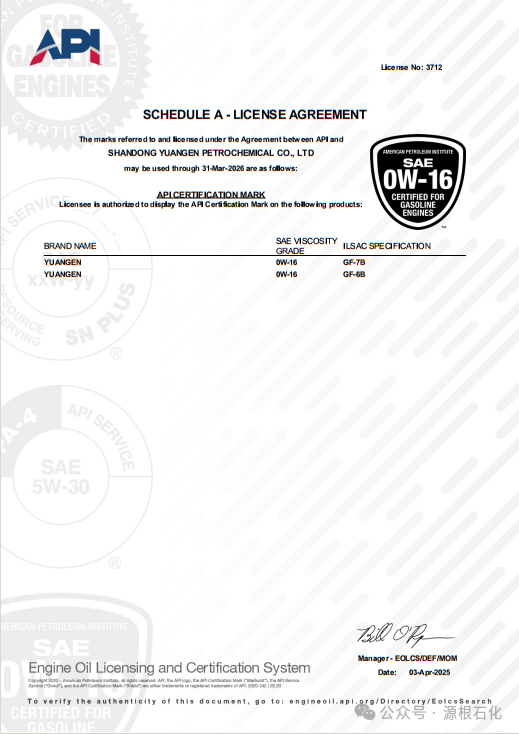 2025年5月,山東源根石油化工有限公司旗下多款油品通過美國石油學(xué)會(huì)(API)SQ最新標(biāo)準(zhǔn)認(rèn)證,其中四款油品更同時(shí)斬獲API SQ與GF-7B雙認(rèn)證,彰顯其在潤(rùn)滑油領(lǐng)域的深厚技術(shù)積淀與國際一流的產(chǎn)品品質(zhì)。