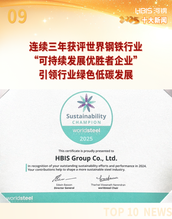 澳大利亞當(dāng)?shù)貢r(shí)間4月8日,世界鋼鐵協(xié)會(huì)在悉尼公布2025年度鋼鐵行業(yè)“可持續(xù)發(fā)展優(yōu)勝者企業(yè)”名單,河鋼以環(huán)境、社會(huì)、管理和經(jīng)濟(jì)等全領(lǐng)域的優(yōu)異表現(xiàn),連續(xù)三年獲此項(xiàng)殊榮。