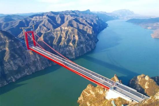 12月30日,由中鐵四局承建的世界首座獨(dú)塔地錨式回轉(zhuǎn)纜懸索橋——黃河三峽大橋正式通車。作為濟(jì)新高速公路的重點(diǎn)控制性工程,該大橋全長(zhǎng)1688.5米,其中主跨555米,成為河南省內(nèi)最大跨徑橋梁。該橋位于黃河小浪底風(fēng)景區(qū)內(nèi),穿越王屋山、黛眉山世界地質(zhì)公園,地形地貌復(fù)雜,環(huán)保要求極高。大橋通車后,使黃河兩岸通行時(shí)間從2小時(shí)縮短至20分鐘,徹底打破區(qū)域交通壁壘,對(duì)于整合區(qū)域旅游資源、帶動(dòng)黃河兩岸經(jīng)濟(jì)發(fā)展、推動(dòng)黃河流域生態(tài)保護(hù)具有重要意義。