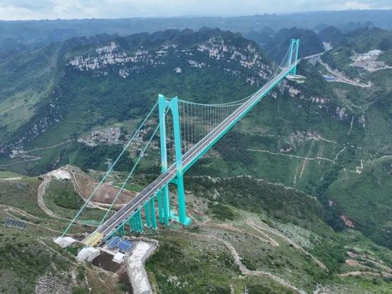 9月28日,由中鐵工業(yè)參建的世界第一高橋——花江峽谷大橋正式建成通車。大橋全長(zhǎng)2890米,橫跨被稱為“地球裂縫”的貴州花江大峽谷,其主橋?yàn)榭鐝?420米的鋼桁加勁梁懸索橋,成為山區(qū)跨徑最長(zhǎng)的橋梁;同時(shí),橋面距水面垂直高度達(dá)625米,刷新了世界最高橋紀(jì)錄。作為六枝至安龍高速公路的關(guān)鍵控制性工程,大橋通車后使兩岸貞豐縣至關(guān)嶺縣的車程從原先繞行約2小時(shí)縮短至2分鐘,真正實(shí)現(xiàn)了“天塹變通途”。