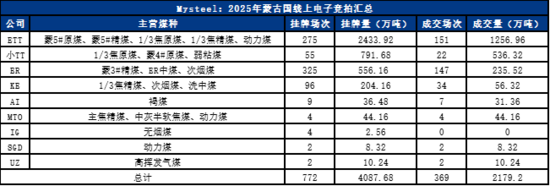 2025年蒙古國電子競拍具體煤種成交量如下圖: