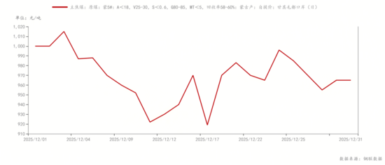 第三周(12月15日-12月31日):價格觸底反彈,最低點(diǎn)919元/噸(12月17日)后回升至970元/噸(12月18日),但月末穩(wěn)定在965元/噸左右。反彈主要受口岸通關(guān)高位(日均1400車以上)和部分補(bǔ)庫需求驅(qū)動,但整體漲幅有限,因市場對后續(xù)焦煤走勢缺乏信心。