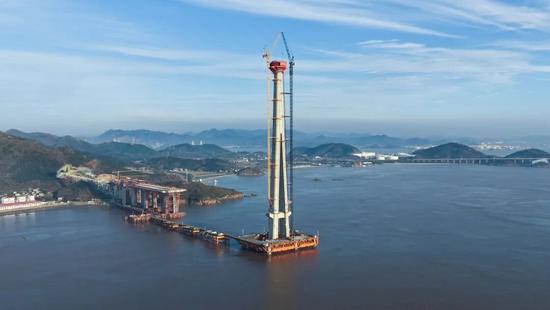 世界第一高海中橋塔建成!甬舟鐵路西堠門公鐵兩用大橋首座主塔封頂